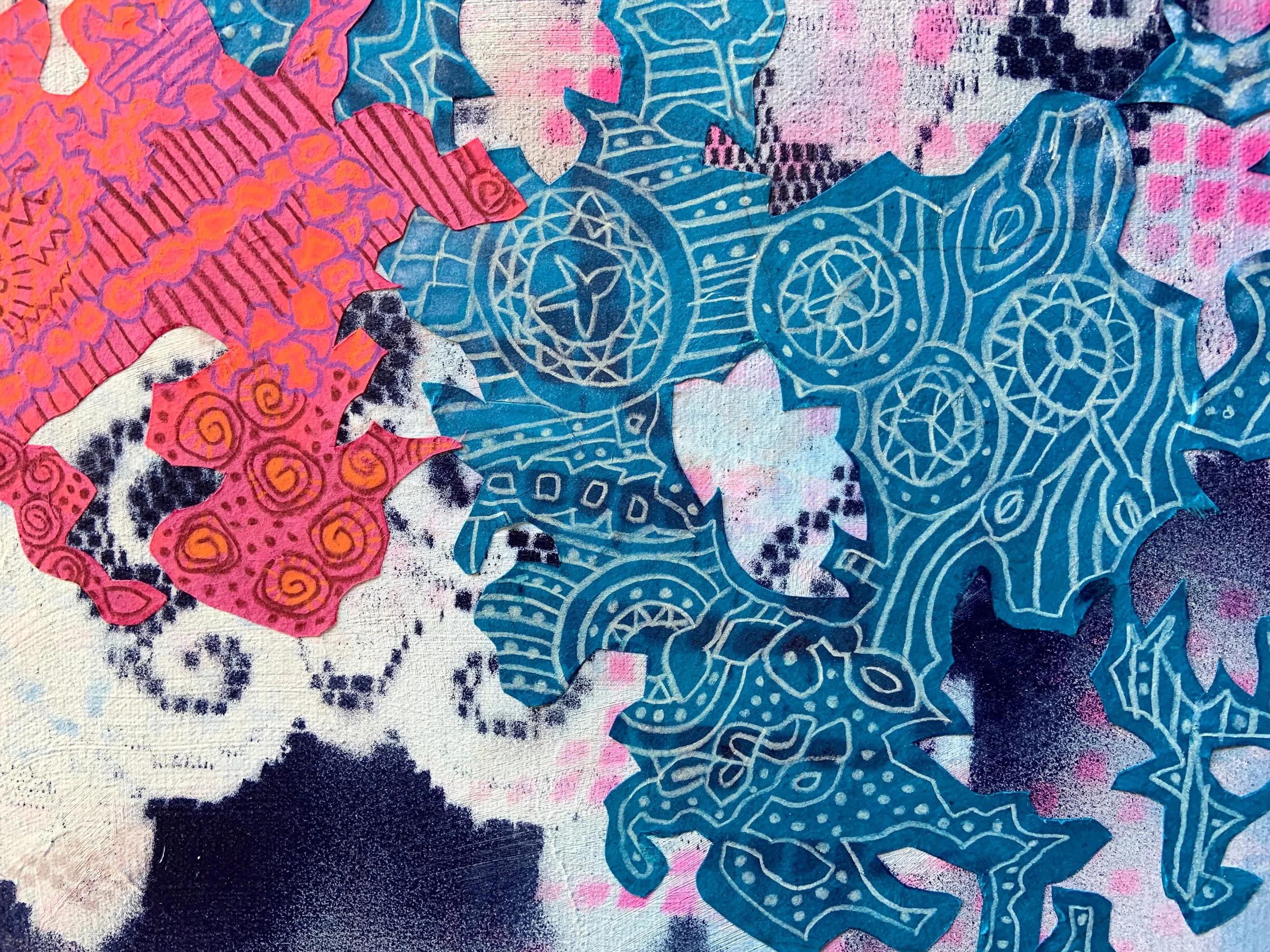Painting with Collage on Canvas, 40” x 30”, 2022
